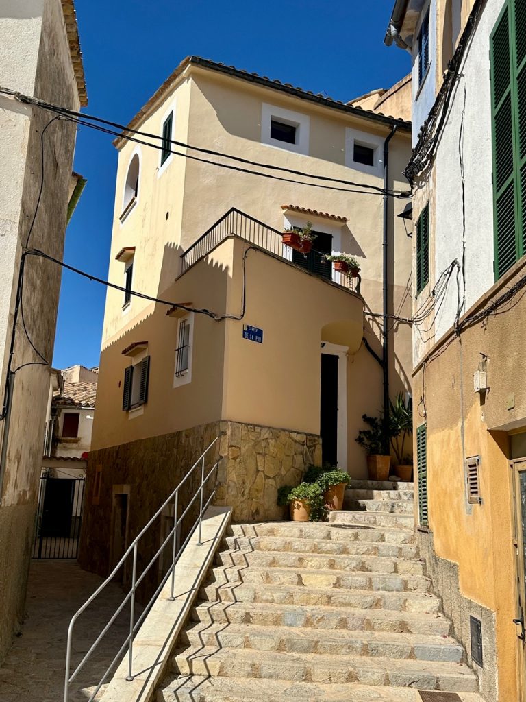 Sie haben die Chance ein authentisches Stadthaus mit 3 Wohnebenen zu erwerben und sofort einzuziehen. Die Liegenschaft befindet sich in einem guten und stilvoll eingerichteten Zustand. Am Rande einer Gasse begehen Sie über eine großzügige Aussen Steintreppe das Haus. Es öffnet sich – im mallorquinischen Stil und Grundriss üblich – ein offener Wohn-/Ess- und Küchenbereich. Ein Terrakottafarbener widerstandsfähiger Stein-Boden, eine in Holz verkleidete individuelle Einbauküche und ein kleines Gäste-WC sind gemütlich und bieten für das EG einen hohen Komfort. Da es sich um ein Eckhaus handelt, ist der Lichteinfluss von 2 Seiten gegeben und gibt dem Haus eine Transparenz und Großzügigkeit.